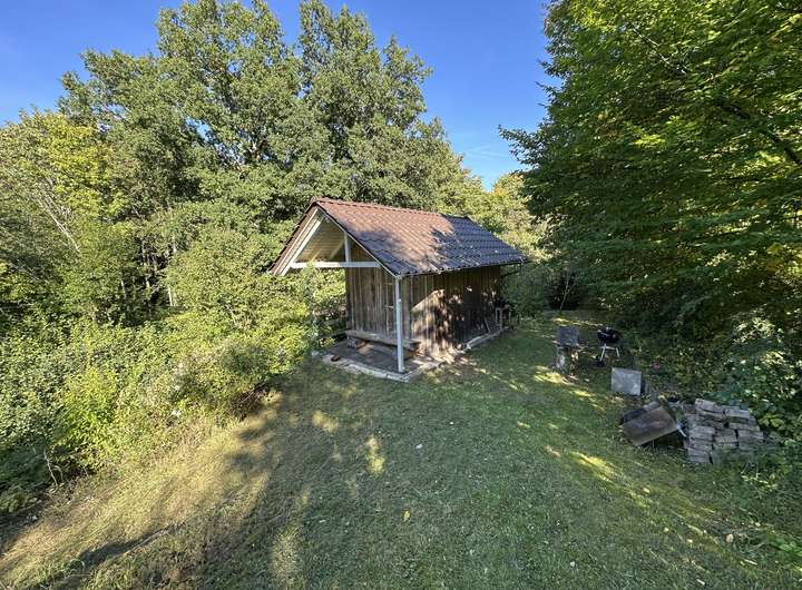 Auf dem Grundstück befindet sich eine Hütte, die 2012 im genehmigten Bauverfahren errichtet wurde.