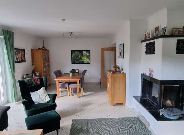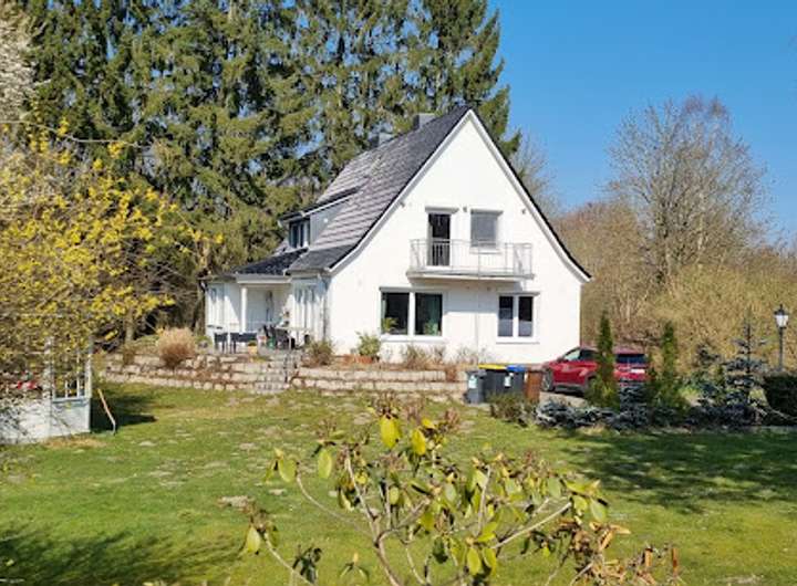 Keller: ca. 100m² Mehrere Kellerräume haben eine Deckenhöhe von ca. 2m. Die Kellerfenster befinden sich oberhalb der Erdhöhe mit Tageslicht und sind trocken daher keine Feuchtigkeit. Der gesamte Keller ist mit Bodenfliesen und Sockeln versehen. Die gesamte Haustechnik ist in einem Kellerraum untergebracht. Erdgeschoß ca. 100m² Eingangsbereich und das Wohnzimmer sind nach Süden gerichtet. Diele als äußerst großzügiger Eingangsbereich mit Windfang und Platz für eine Garderobe. Gesamtes Erdgeschoß mit 50 x 50cm Bodenfliesen und Sockeln gefliest. Modern gestaltetes Gäste-WC. Im EG befinden sich 2 weitere Zimmer und ein separater Stauraum. Wohnzimmer raumhohe Fenster, Terrassentür als Zugang zum Garten, davor Terrasse Neuer Kamin wurde im Wohnzimmer eingebaut. Alle Zimmertüren im gesamten Haus, Oberfläche Buche, mit Holzzargen und Röhrenspantürblättern, hochwertigen Drücker Garnituren. Große Einbauküche mit neuwertigem Tresen und gemütlichem Essbereich. Dachgeschoß ca. 80 m² Vollbad: Dusche, Fußbodenheizung, Fliesen aus Granit Fußboden im Dachgeschoß mit 50 x 50 cm Fliesen mit Sockel, sehr modern. Holztüren, Oberfläche Buche. Schlafzimmer mit Balkon zur Südseite mit Rostfreiem Geländer Spitzboden ca.40m² Vom Dachgeschoß zum Spitzboden führt eine Wendeltreppe aus Holz. Der 40 m² große Spitzboden ist als kinderfreundliches Spielzimmer ausgebaut, und hat einen hochwertigen Dielenboden. Garten ca. 500m² Im hinteren Teil des Gartens auf der Ost- und Nordseite des Hauses grenzt das Grundstück an einem schönen Wald, daher hat man von der großzügigen, gestalteten Terrasse einen schönen Waldblick. Über die Terrasse kann man über zwei verschiedene Treppen den restlichen, modernen gestalteten Garten betreten. Zum Aufenthalt ist ein einladender Pavillon vorhanden.