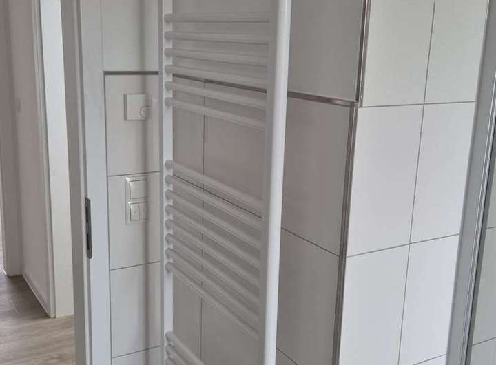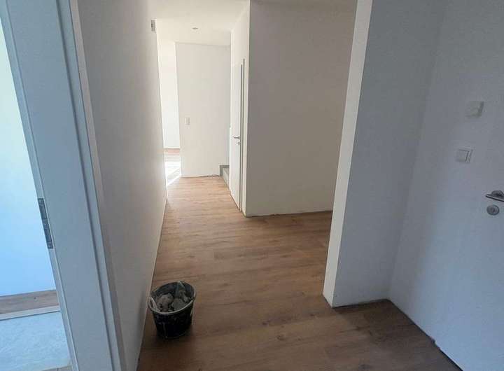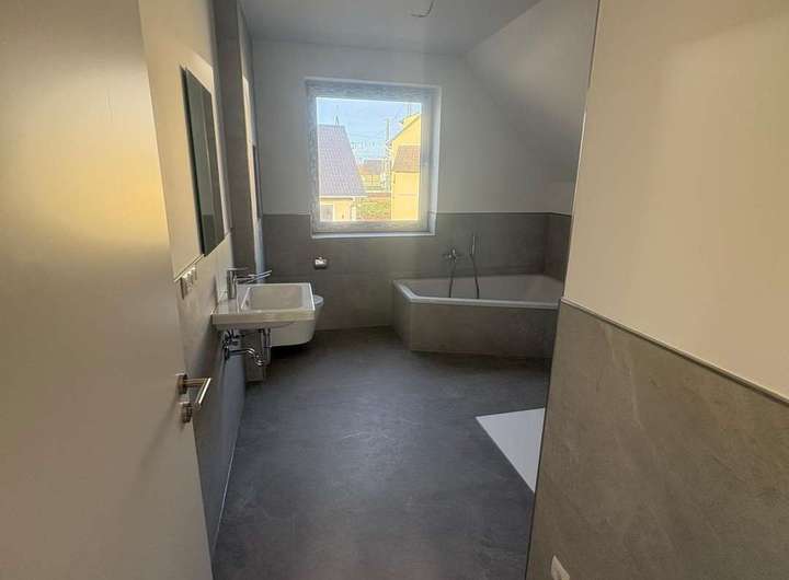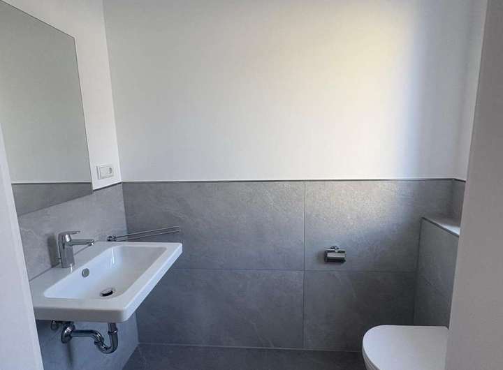 Die zur Miete angebotene moderne Neubau- Doppelhaushälfte überzeugt durch die massive hochwertige Bauweise, energieeffiziente Technik sowie das helle und einladende Raumkonzept. Schon im Eingangsbereich fällt die angenehme Fußbodenheizung auf, die im gesamten Haus für ein gleichmäßiges und komfortables Raumklima sorgt. Auf der linken Seite befindet sich ein stilvoll gestaltetes Gäste-WC, während gegenüber ein praktischer Raum mit direktem Zugang nach draußen liegt, der zugleich die Technik der Photovoltaikanlage aufnimmt und vielseitige Nutzungsmöglichkeiten bietet.