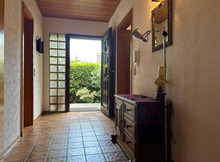 Beim Betreten des Hauses werden Sie von einem einladenden Eingangsbereich empfangen. Eine praktische Abstellnische sorgt für Ordnung und Stil.