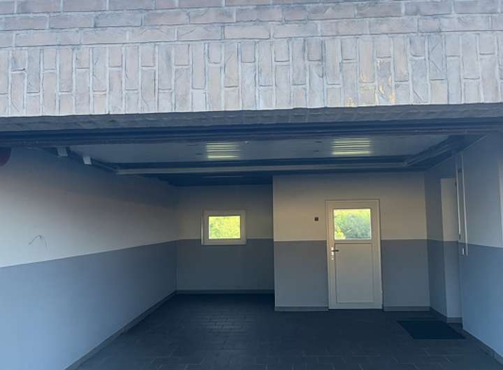 Eine Garage mit elektrischem Torantrieb und angrenzender Werkstatt bietet zusätzlichen Komfort und Abstellmöglichkeiten.