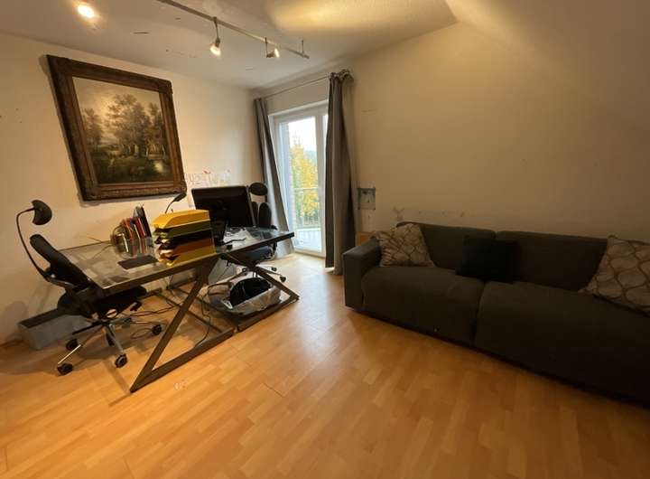 Ein Gäste- oder Arbeitszimmer liegt direkt neben dem Tageslichtbad mit Dusche.