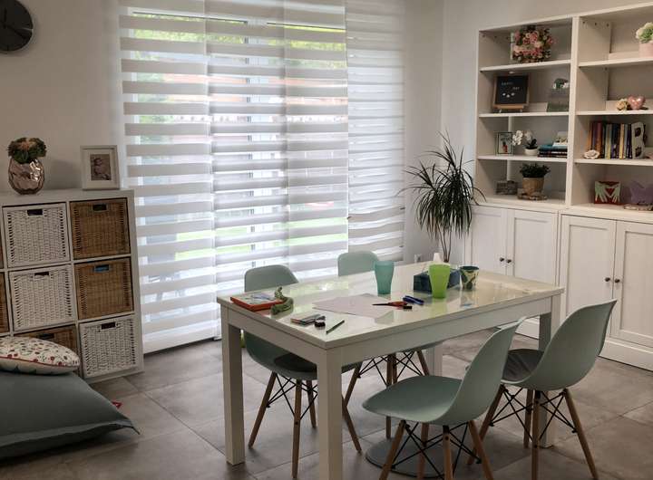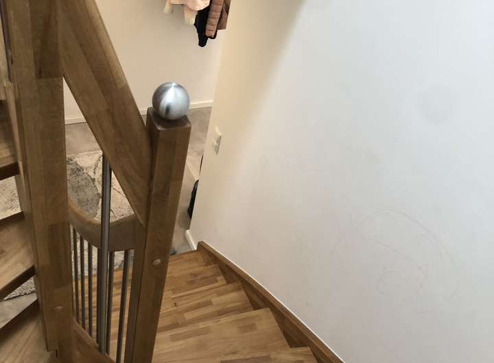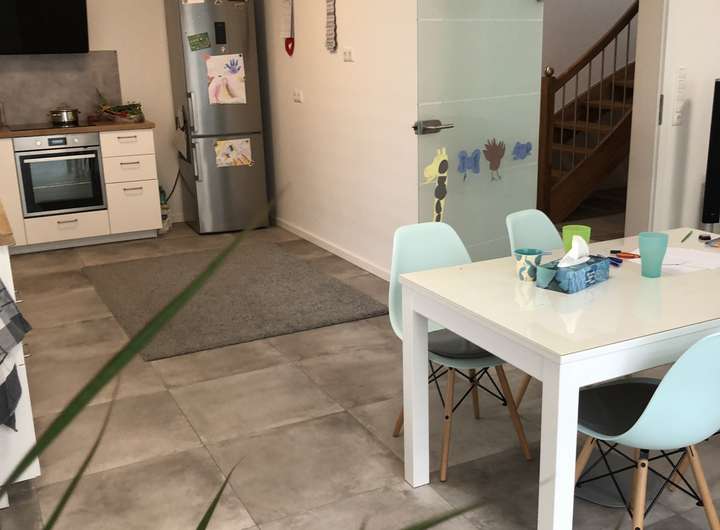 Im Erdgeschoss erwartet Sie ein einladender Eingangsbereich, ein modernes Duschbad, ein praktischer Hauswirtschaftsraum mit Waschmaschinenanschluss sowie ein großzügiger, offen gestalteter Wohn- und Essbereich mit integrierter Einbauküche. Von hier aus gelangen Sie direkt auf die Terrasse und in den gepflegten Garten. Bodentiefe Fenster und ein heller Bodenbelag sorgen für ein freundliches, lichtdurchflutetes Ambiente. Sämtliche Fenster und Türen sind mit elektrischen Jalousien ausgestattet und bieten optimalen Sicht- und Sonnenschutz.