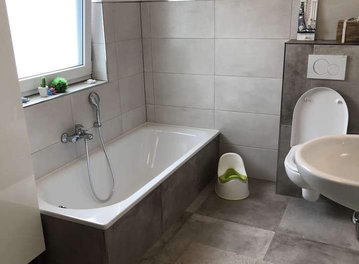 • Moderne Badezimmer mit Badewanne und Dusche