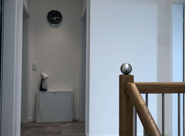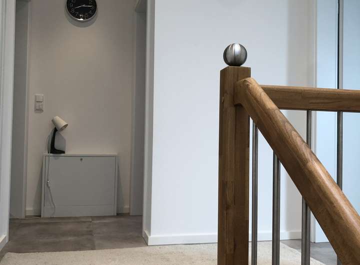 Über eine stilvolle Treppe gelangen Sie ins Obergeschoss. Hier stehen Ihnen drei gut geschnittene Schlafzimmer, eine Diele sowie ein modernes Tageslichtbad mit zeitgemäßen Fliesen, Badewanne und ebenerdiger Dusche zur Verfügung. Auch in diesem Geschoss sind alle Räume mit elektrischen Jalousien ausgestattet.
