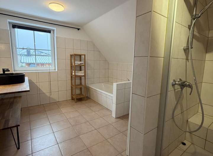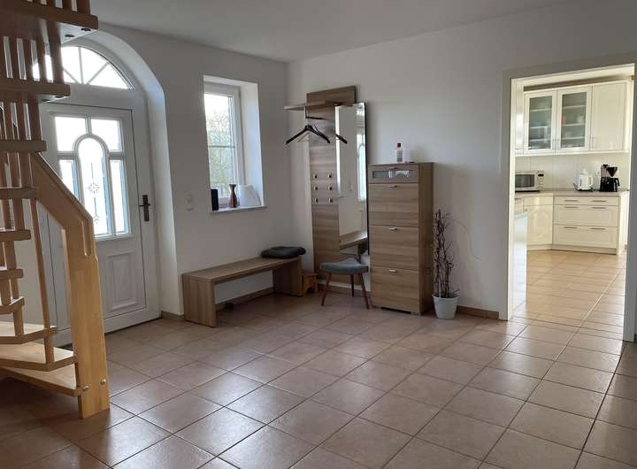 Die Wohnfläche verfügt über eine einladende Terrasse die sich perfekt für gesellige Grillabende im Freien eignet. Den großen Garten können Sie für ausgiebige Spiele im Freien oder auch einfach nur zum Entspannen genießen. Die praktische, voll ausgestattete Küche ermöglicht Ihnen, kulinarische Köstlichkeiten zu kreieren.