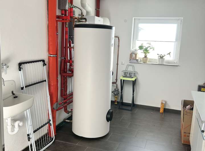Beheizt wird das Haus über eine Gas-Brennwerttherme mit Fußbodenheizung, die für ein angenehmes Wohnklima sorgt. Die Warmwasseraufbereitung erfolgt ebenfalls über die Brennwerttherme und wird zusätzlich durch eine Solarthermieanlage unterstützt.