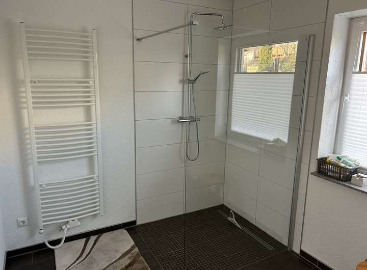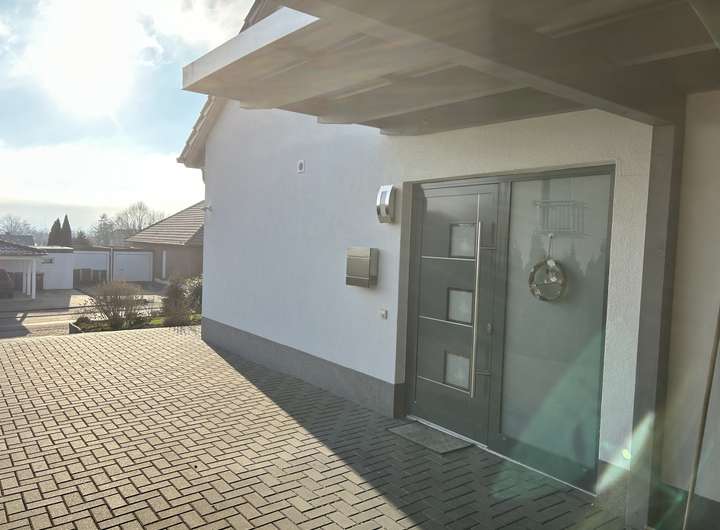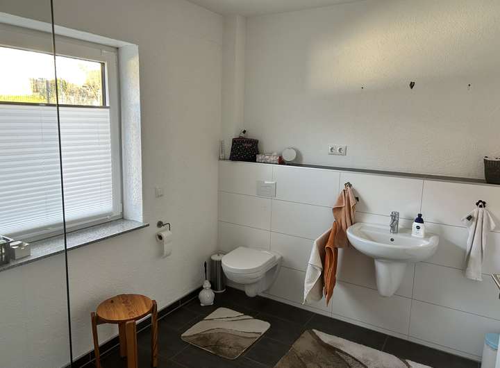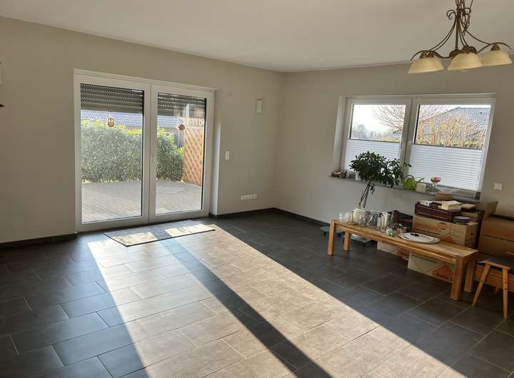 Das Haus ist mit 3-fach verglasten Fenstern und elektrischen Rollläden ausgestattet, die für zusätzlichen Komfort und eine gute Isolierung sorgen. Über die bodentiefen Fenster im Wohnzimmer und in der Küche hat man direkten Zugang zur großzügigen, sichtgeschützten Terrasse, die zum Entspannen und Verweilen einlädt.