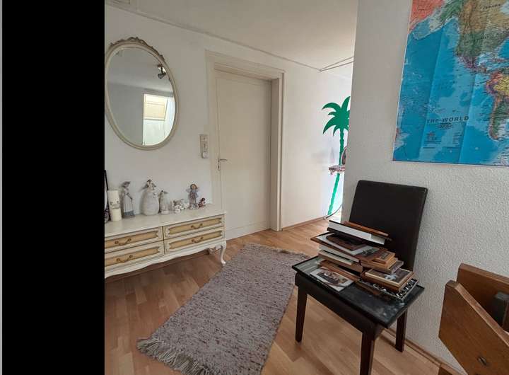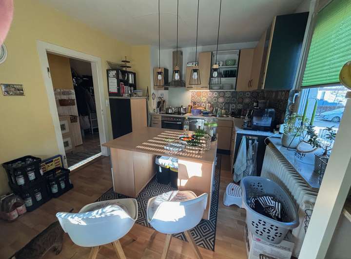 Die Doppelhaushälfte mit ca. 110 m² Wohnfläche und fünf Zimmern steht ab dem 1. April 2026 zur Vermietung. Das Haus erstreckt sich über drei Etagen und verfügt über eine solide Innenausstattung.