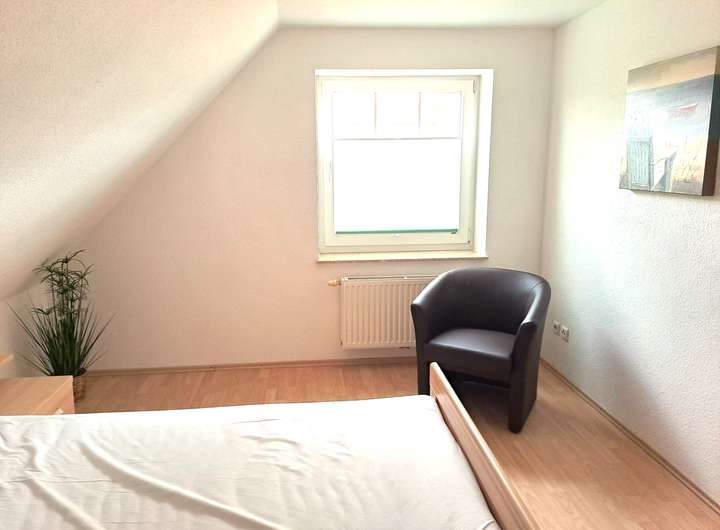 Im Obergeschoss liegen zwei gut proportionierte Schlafzimmer. Das voll-ausgestattete