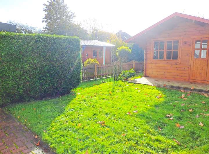 Stunden im Freien schafft. Der gepflegte Garten mit Garten-Blockhaus bietet zudem