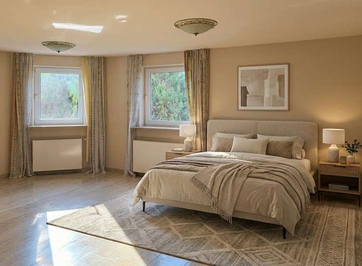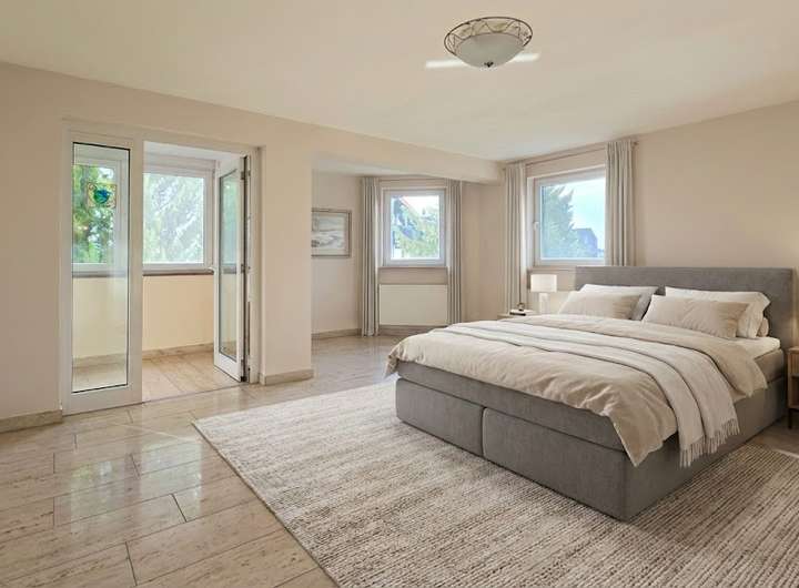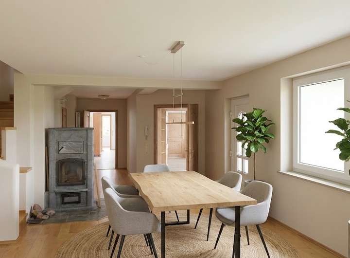 Hinweis: Um Ihnen das enorme Potenzial dieser Immobilie zu verdeutlichen, haben wir einige Innenräume virtuell modern gestaltet. Lassen Sie sich inspirieren, wie dieses Haus in einem modernen, skandinavischen Stil erstrahlen kann!
