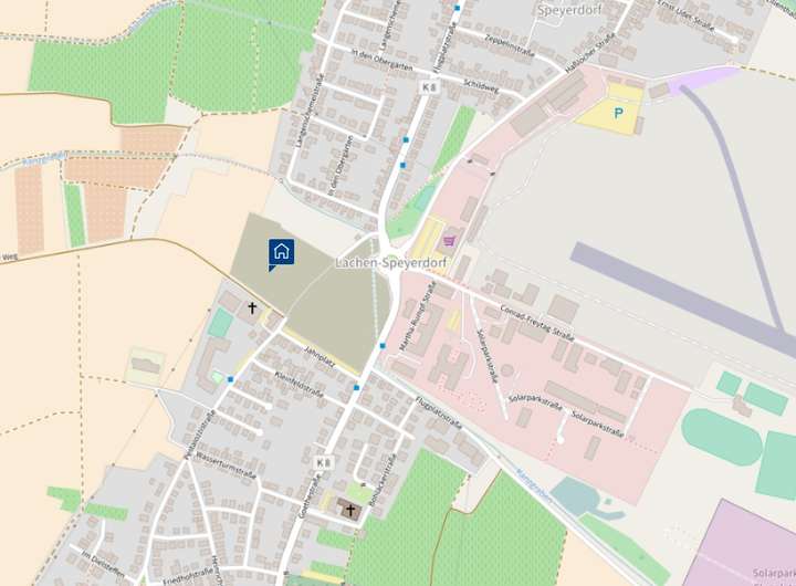 Das Neubaugebiet verbindet die beiden vorhandenen Ortsteile und wird somit zur neuen Ortsmitte von Lachen-Speyerdorf.