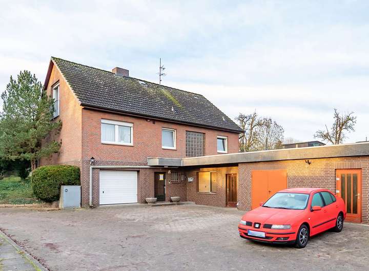 Großzügiges Wohnhaus mit Garten, Garagen und Ackerland