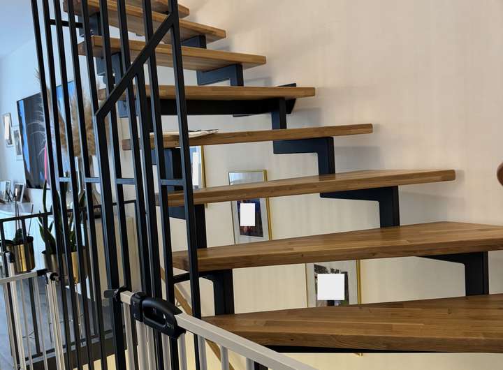 Dieses Reihenhaus mit Keller erstreckt sich über drei Ebenen. An den Wohn-/Essbereich im Erdgeschoss schließt sich die offene Küche an. Von hier aus haben Sie auch Zugang zur Terrasse und zum Garten. Im Obergeschoss finden Sie zwei Zimmer und das Tageslichtbad. Ein weiteres Zimmer, das sich als Schlafzimmer ebenso gut nutzen lässt wie als Arbeitsraum, findet sich im Untergeschoss und erhält durch die großen Fenster viel Licht.