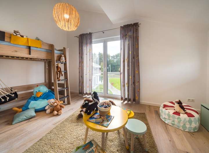 Perfekt in jedes ländliche und urbane Wohnumfeld fügt sich unser Zinshaus 4 ein. Das klassische Stadthaus mit zeitlos-elegantem Walmdach verfügt über zwei identische Wohnungen, die sich jeweils über zwei Etagen erstrecken. Besonders praktisch: der von außen zugängliche, gemeinsam genutzte Hauswirtschaftsraum. Über zwei separate Eingänge und einen unmittelbar dahinter gelegenen Windfang geht es in die mehr als 136 m² große Wohnung. Im vorderen Bereich befinden sich ein Gäste-WC sowie ein Abstellraum. Der sich anschließende Flur führt direkt in das große und lichtdurchflutete Wohn-Ess-Zimmer, an den sich eine geräumige Küche anschließt. Eine Wendeltreppe verbindet die beiden Stockwerke miteinander und führt in den Erholungsbereich für die ganze Familie. Hier ist Platz für zwei Kinderzimmer sowie ein geräumiges Elternschlafzimmer mit einem separaten Ankleidebereich. Ein Badezimmer mit Wanne, Dusche und WC rundet das Raumangebot im Obergeschoss ab. Zinshaus 4: Zeitlos-elegante Architektur und maximaler Wohnkomfort.