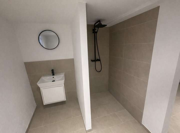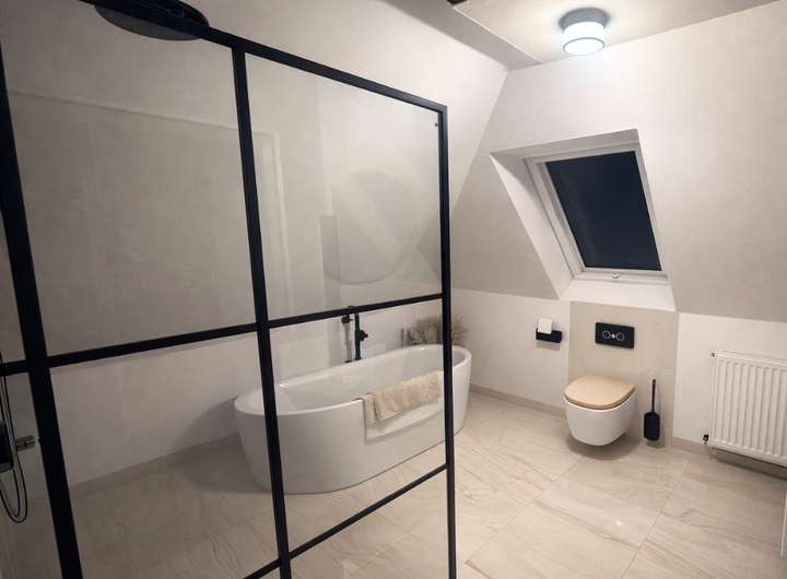• moderne Wand- und Deckenaufbauten + hochwertige große moderne Fliesen