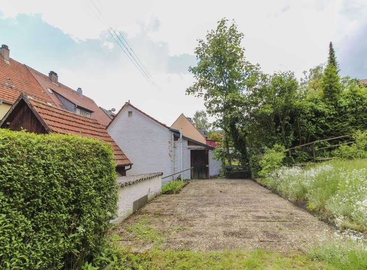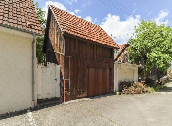 + Altbestand (Garage in Massivbauweise und Holzschuppen) vorhanden, der abgerissen oder alternativ komplett saniert werden kann
