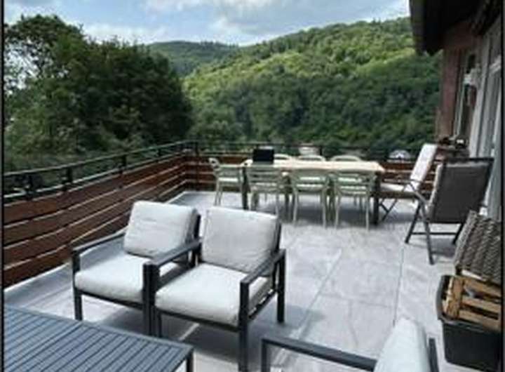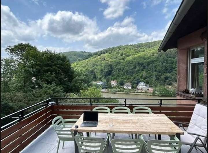 •Balkon in der Küche mit Blick an der Neckar und Wald