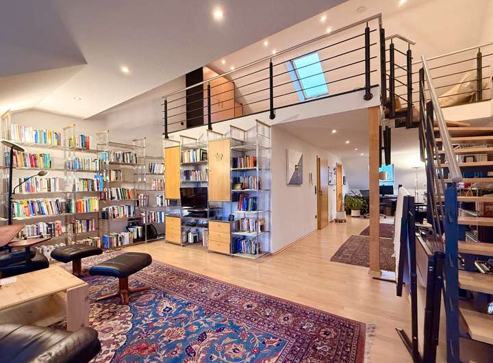Ein besonderes Highlight ist das ausgebaute Dachgeschoss mit großem Studio und Galerie. Dieser Bereich eignet sich hervorragend als Home-Office, Atelier oder Rückzugsort und bietet ein außergewöhnliches Raumgefühl.