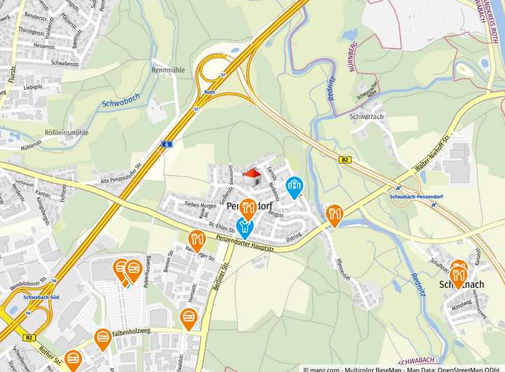Ein großer Pluspunkt ist die hervorragende Anbindung an das Verkehrsnetz. Die Autobahn liegt lediglich etwa 0,5 Kilometer entfernt, was eine schnelle Erreichbarkeit der umliegenden Städte, insbesondere Nürnberg, ermöglicht. Die dortige S-Bahn- und Autobahnanbindung bringt Sie in ca. 20 Minuten in das Herz von Nürnberg, während das Stadtzentrum von Schwabach in nur etwa 5 Minuten erreichbar ist.