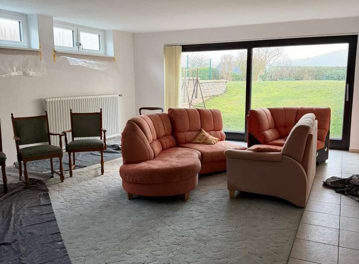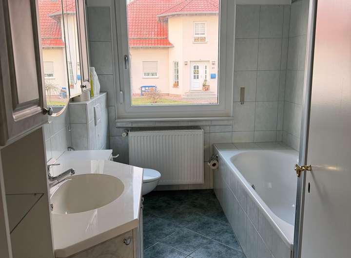 Erstbezug nach Modernisierung, neue Fenster, neue Elektrik, neuer Fußboden, Wände mit Vlies, Decken mit Glasfasertapete weiß gestrichen, Dachbodendämmung usw.