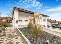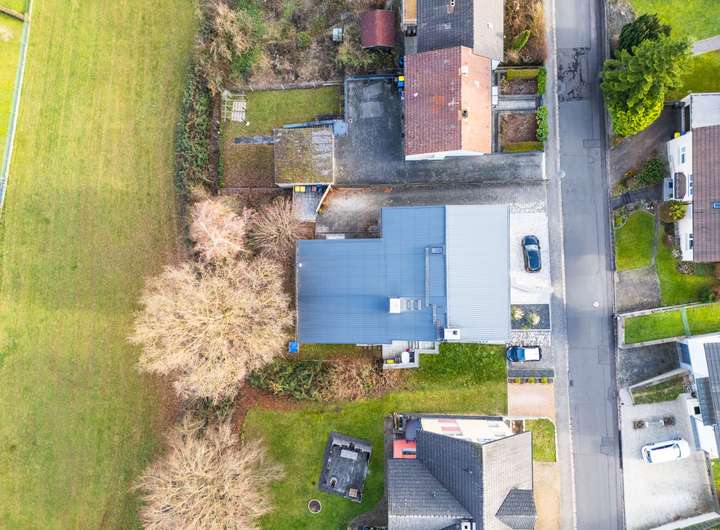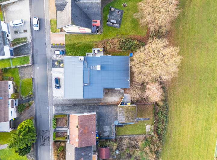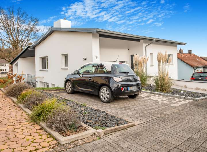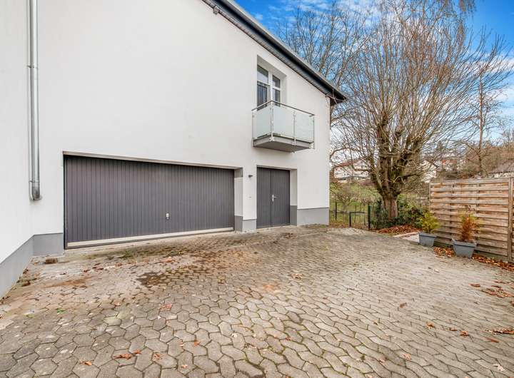 Das Grundstück bietet einen ruhigen Garten, eine Doppelgarage sowie zwei weitere Stellplätze auf dem Grundstück. Die weitläufige Außenfläche schafft Raum für Freizeitaktivitäten, Gartenprojekte und Erholung im Grünen. Damit verbindet die Immobilie moderne Wohnansprüche mit einem hohen Maß an Privatsphäre.