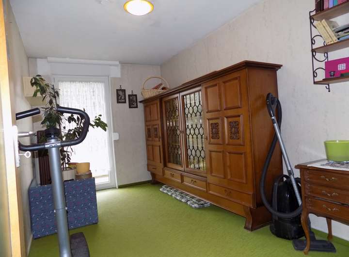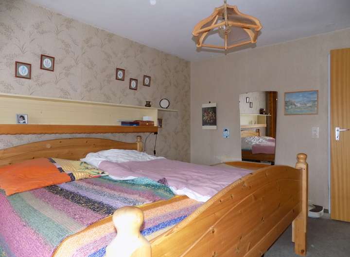 Eine Einbauküche ist vorhanden. Die Garage sowie ein zusätzlicher Stellplatz runden das Angebot ab. Im Innenbereich wurden die Böden mit Parkett-, Teppich- und Fliesen belegt. Im Obergeschoss befinden sich in den Schlafräumen vorwiegend Teppichböden. Der Speicher bietet zusätzlich Stauraum. Zudem besteht die Möglichkeit eines ca. 1,5 m breiten Anbaus in Richtung Garage, der mit dem Bauamt abgeklärt werden müsste.