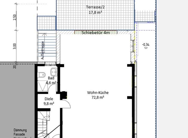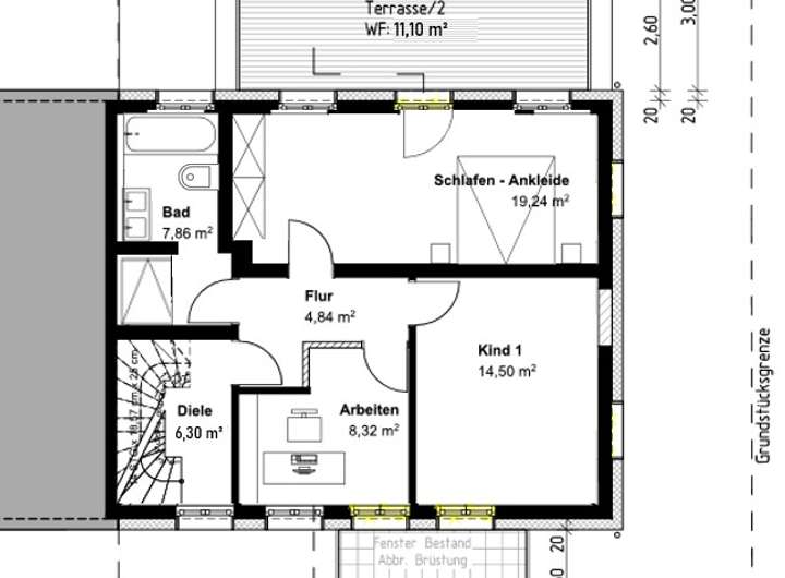 • Neue Grundrisse, insbesondere neuer Anbau mit Dachterrasse und Unterkellerung
