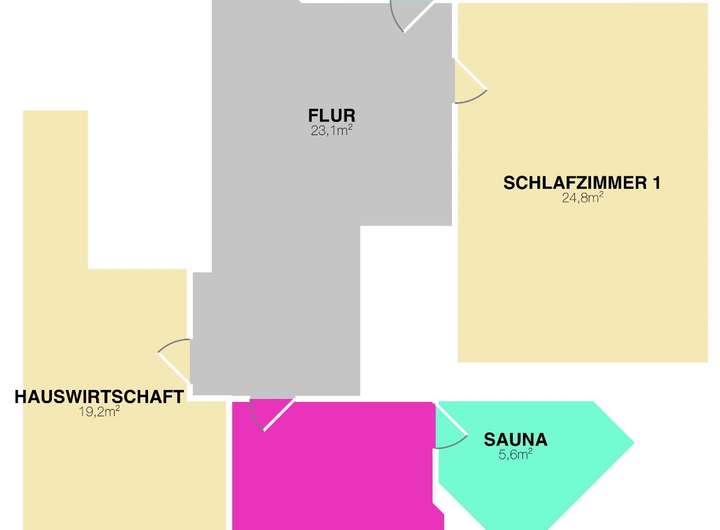Im Obergeschoss stehen zwei sehr große Schlafzimmer zur Verfügung. Ein Highlight ist der Bereich mit separater Sauna sowie zusätzlichem Einbauschrank. Ein weiterer, großzügiger Raum wurde bisher als Hauswirtschaftsraum genutzt und eignet sich je nach Bedarf auch als Büro oder zusätzlicher Wohn-/Hobbybereich. Das Badezimmer ist mit ebenerdiger Dusche, Badewanne und Doppelwaschbecken ausgestattet.