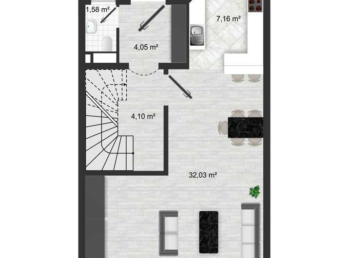 Im Erdgeschoss erwartet Sie ein einladender Flur mit Zugang zum Gäste-WC sowie der offene, lichtdurchflutete Wohn- und Essbereich mit integrierter Küche. Die hochwertige Einbauküche ist bereits im Kaufpreis enthalten und bietet alles, was das Herz begehrt – ideal für alle, die Kochen und Geselligkeit lieben. Vom Wohnzimmer aus gelangen Sie direkt in den gepflegten Garten, der zum Entspannen und Verweilen einlädt.