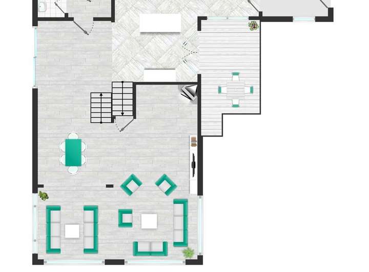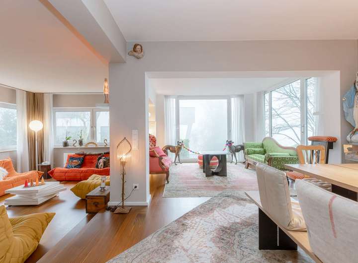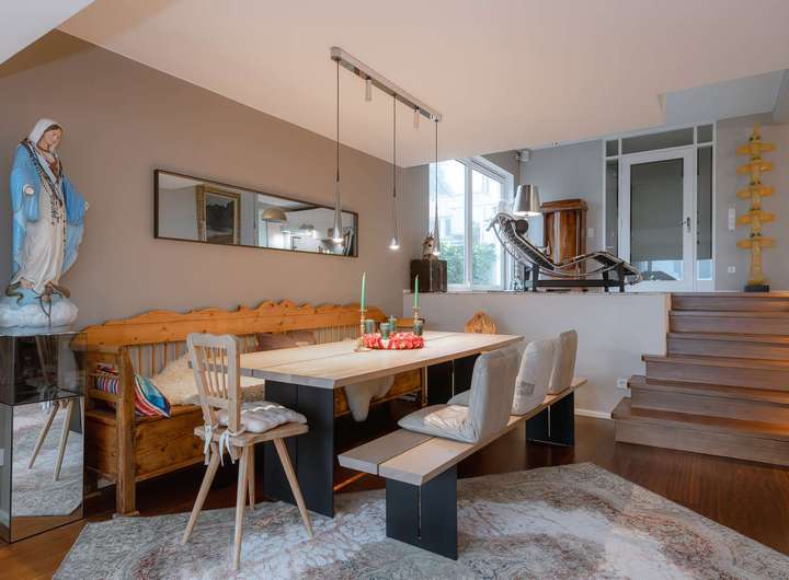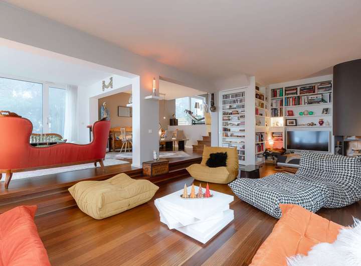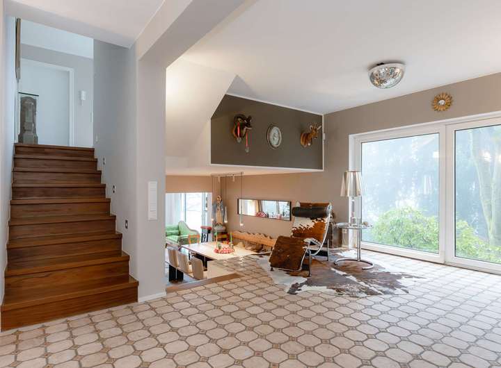– offener Wohn-, Ess- und Küchenbereich in Split-Level-Bauweise