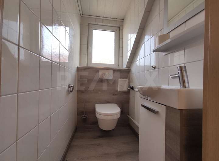 Es verteilen sich im Erdgeschoss auf 108m² ein Wohnzimmer, eine geräumige Wohnküche, 3 Schlafzimmer, Bad, sep. WC, Diele und Abstellraum.