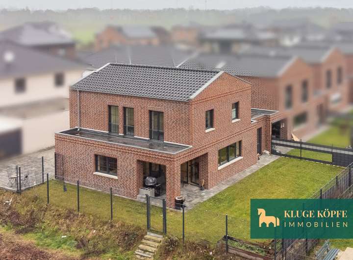 In sehr zentraler und ausgezeichneter Lage von Lohne befindet sich dieses hochwertige Einfamilienhaus auf einem ca. 404 m² großen Eigentumsgrundstück. Das im Jahr 2023 nach modernstem energetischen Standard errichtete Haus überzeugt durch seine exzellente Ausstattung, zeitloses Design und eine familienfreundliche Umgebung.
