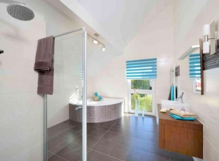 In der oberen Etage finden Sie alles, was Sie brauchen. Ein geräumiges Schlafzimmer für die Großen und zwei Kinderzimmer für die Kleinen. So hat jeder sein eigenes Reich. Und erst richtig lustig wird es gemeinsam im schönen Bad. So fühlt sich Leben an.