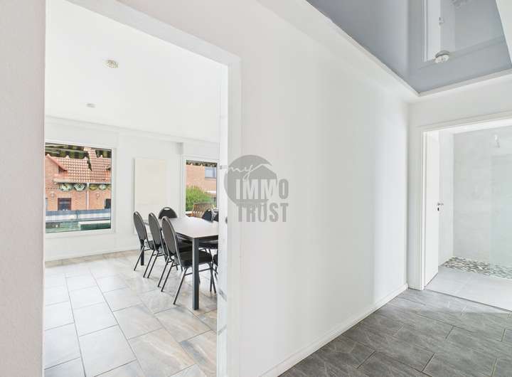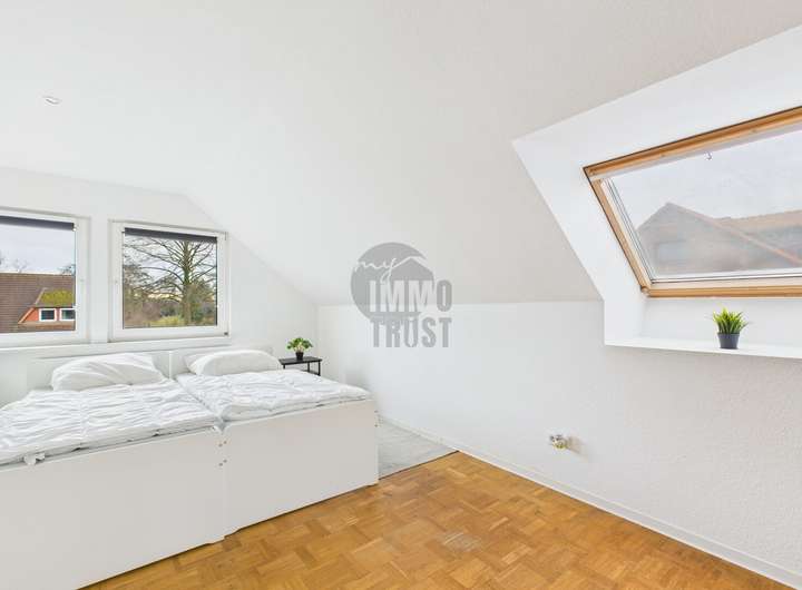 Mit einer Wohnfläche von ca. 180 m² und einer zusätzlichen Nutzfläche von ca. 105 m² bietet das Haus ausreichend Platz für die ganze Familie. Die 7 Zimmer teilen sich optimal auf zwei Etagen auf und bieten Komfort und Flexibilität für individuelle Wohnbedürfnisse. Sechs geräumige Schlafzimmer und drei moderne Badezimmer stellen sicher, dass jedes Familienmitglied seine persönliche Rückzugsoase hat.