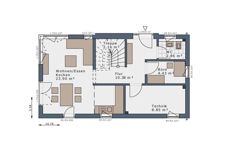 - Bodenplatte inkl. Effizienzhaus 55 Perimeter-Dämmung unterhalb der Bodenplatte sowie stirnseitig