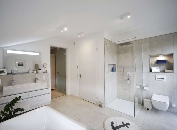 Den finalen Ausbau erbringen Sie dann in Eigenleistung. Hierzu gehören beispielsweise Fliesen an Wänden und Böden,
