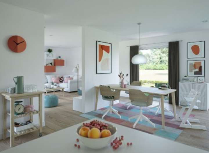 Stell dir vor, du betrittst dein ganz persönliches Paradies in Selmsdorf. Dieses Fertighaus, perfekt auf deine Wünsche und Vorstellungen zugeschnitten, bietet dir mit einer großzügigen Wohnfläche von 110,44 m² auf einem weitläufigen Grundstück von 630 m² den Raum, den du benötigst. Mit fünf Zimmern, darunter zwei einladende Schlafzimmer und ein modernes Badezimmer, ist es der ideale Rückzugsort für die gesamte Familie. Die durchdachte Architektur des Hauses vereint modernes Design mit einem funktionalen Grundriss, der sowohl Praktikabilität als auch eine einladende Atmosphäre schafft. Der Bau erfolgt in nur einer Etage, was den Zugang erleichtert und die Möglichkeit für einen barrierefreien Lebensstil eröffnet. Besonders hervorzuheben ist die hochwertige Traumküche von Living Haus, die nicht nur ästhetisch ansprechend, sondern auch äußerst funktional ist. Sie wird speziell nach deinem Grundriss geplant und kommt mit modernster Technik sowie cleveren Stauraumlösungen, sodass du beim Kochen keine Kompromisse eingehen musst. Der digitale Living Haus Bau-Cockpit garantiert dir, dass du jederzeit den Überblick über dein Bauprojekt behältst. Mit der I-KON-Technologie stellst du sicher, dass dein Zuhause nachhaltig und energieeffizient ist. Dank des Zuhause-Darlehens profitierst du von attraktiven Finanzierungsangeboten, die dir helfen, deinen Traum von den eigenen vier Wänden zu verwirklichen. Das Zuhause-Paket bietet dir eine hochwertige Grundausstattung, sodass du sofort einziehen kannst. Und wenn du Lust auf DIY hast, steht dir das Ausbau-Coaching zur Verfügung, wo dir Profis alles beibringen, was du für den Innenausbau wissen musst. Living Haus bietet dir ein durchdachtes Gesamtkonzept, damit dein Traumhaus so sicher und passend wie möglich verwirklicht wird. Hier wird nicht nur ein Haus gebaut, sondern ein Zuhause geschaffen, das deinen Bedürfnissen gerecht wird und auf deine Ansprüche abgestimmt ist.