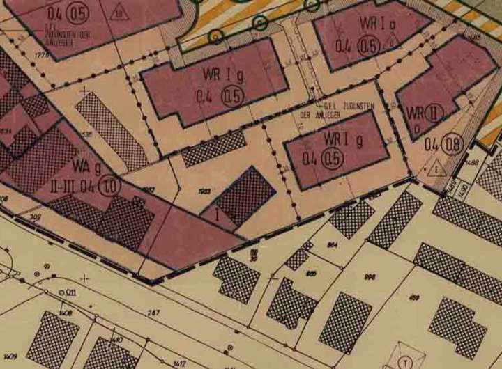 Die Bebauung des voll erschlossenen Grundstücks richtet sich nach dem vorliegenden Bebauungsplan Nr. 29 (II. Änd.). Dieser erlaubt im vorderen Teil des Grundstücks eine Grundflächenzahl (GRZ) von 0,4 und eine Geschossflächenzahl (GFZ) von 1,0 bei geschlossener Bauweise sowie zwei bis drei Vollgeschossen. Im hinteren Bereich ist eine GRZ von 0,4 und eine GFZ von 0,5 bei eingeschossiger Bauweise zulässig. Daraus ergibt sich eine potenziell realisierbare Bruttogeschossfläche von ca. 1.500 m². Auf dem Grundstück befindet sich derzeit noch ein Altbestand in Form eines Einfamilienhauses, das bezugsfrei übergeben wird.