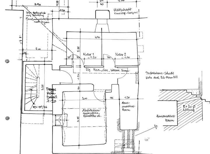 geräumige Unterkeller. für Abstell-, Trocken- und Waschräume.
