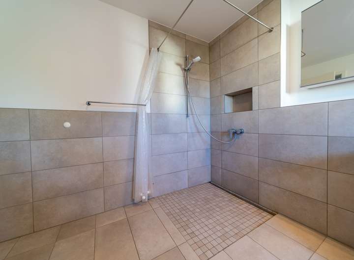 Alle Zugänge zum Haus sind für Kinderwägen und Rollstuhlfahrer problemlos, die Duschen ebenerdig gefliest und Türen zu den Wohn- und Schlafräumen sowie Bädern sind mindestens 100 cm breit. Die Treppen wurden mit verlängerten Handläufen versehen. Für weitere mögliche beleuchtete Handläufe sind Anschlüsse vorbereitet.