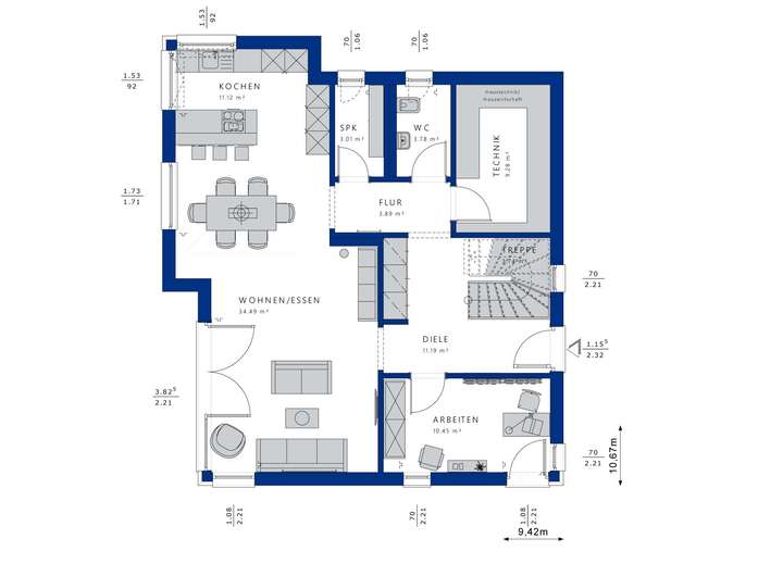 Individuelle Grundrissplanung, inklusive Gäste-WC, Technik- und Abstellraum