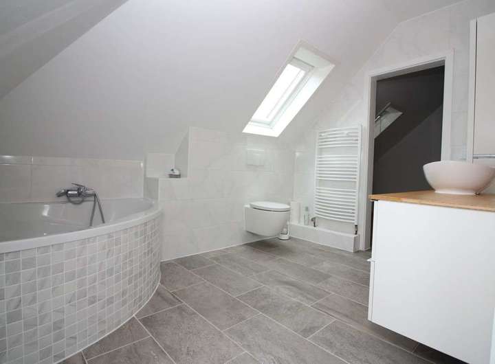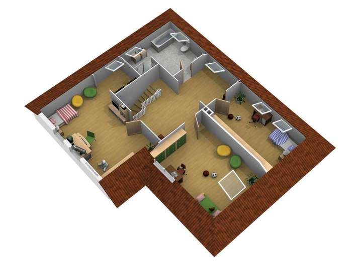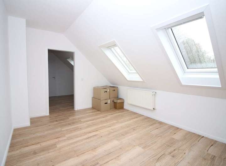 Die obere Etage erhielt einen warmen Korkboden in Holzoptik sowie einige neue zusätzliche Dachfenster.