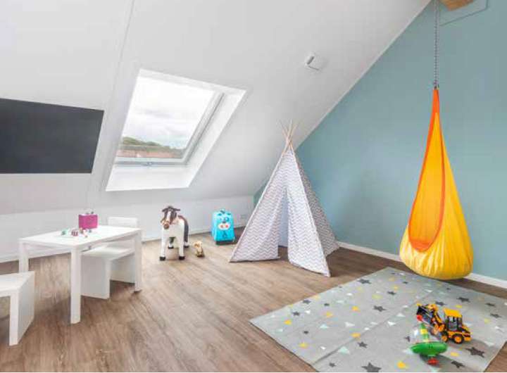 Im Dachgeschoss befinden sich zwei weitere helle Zimmer mit einer Gaube bzw. Dachflächenfenster sowie ein weiteres Bad. Auch dieses Bad verfügt über hochwertige Sanitärgegenstände, eine große Dusche (90 cm x 120 cm) mit Echtglasabtrennung, einem Handtuchheizkörper sowie einem Waschmaschinenanschluss. Zusätzlich führt im Flur vom Dachgeschoss eine ausklappbare Treppe zum großzügigen Spitzboden mit ca. 19 m² Stellfläche.