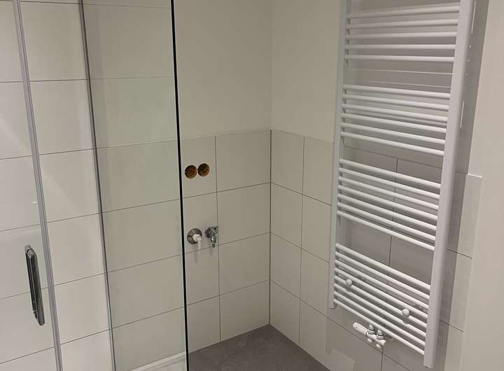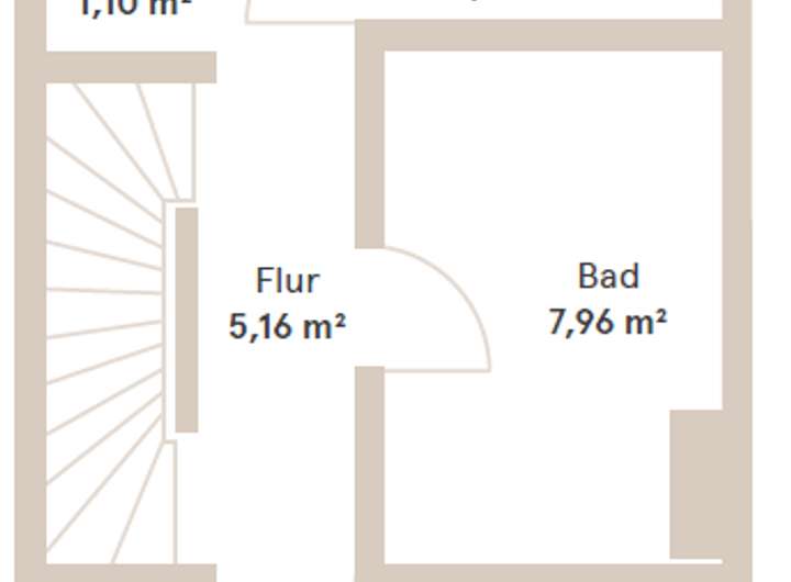 Über die Treppe im Wohn- und Essbereich erreichen Sie das Obergeschoss. Ein Flur verbindet zwei Zimmer, ein Bad, einen Abstellraum sowie eine Nische, die Sie z.B. als Stauraum nutzen können. Das Bad ist hochwertig ausgestattet mit eleganter Sanitärgegenständen, einer Badewanne, einer großen Dusche (90 cm x 120 cm) mit Echtglasabtrennung, einem Handtuchheizkörper sowie einem Waschmaschinenanschluss.