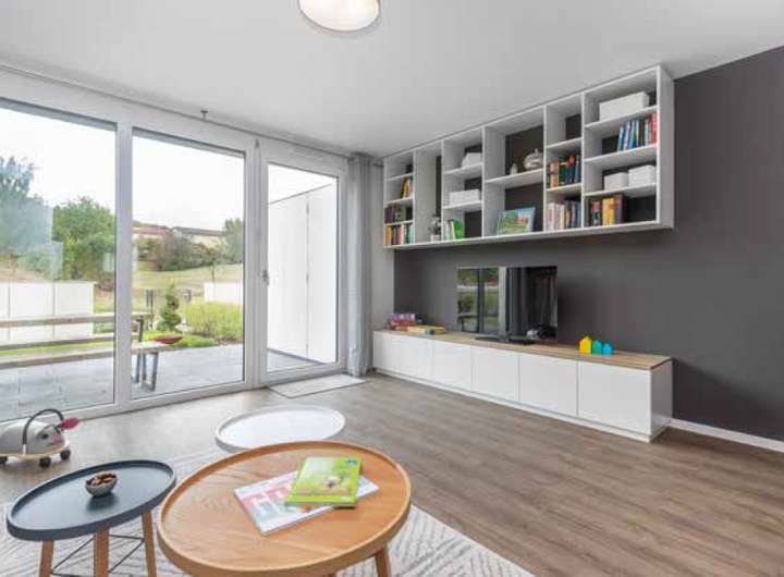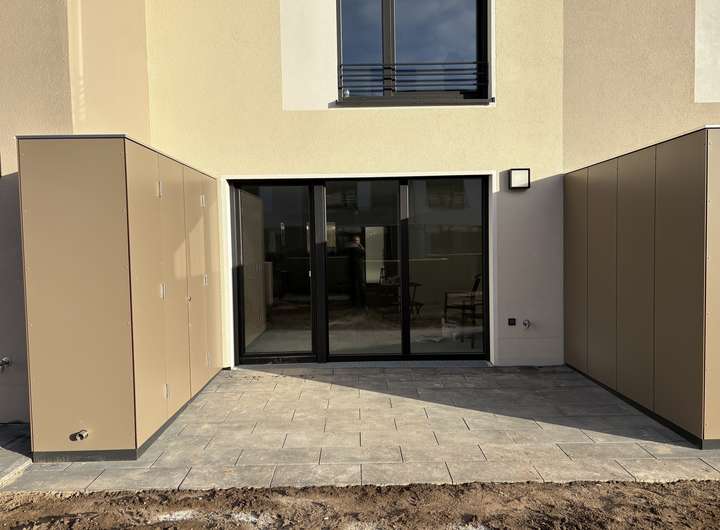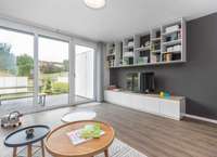 Vom Wohnzimmer aus erreichen Sie die sonnige Terrasse und den angrenzenden Garten – ideal für Familien mit Kindern. Auch hier bieten Ihnen sowohl ein Terrassenschrank als auch eine Gartenbox ausreichend Stauraum.