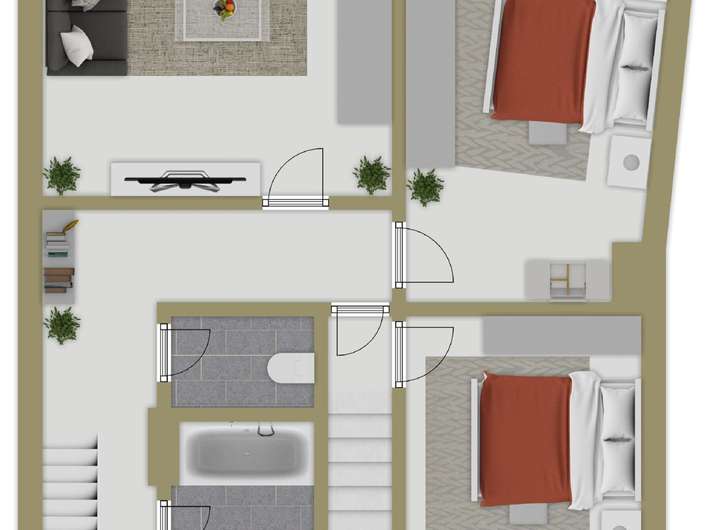 Die Wohnfläche von ca. 126 m² umfasst fünf großzügige Zimmer, davon drei gemütliche Schlafzimmer, die Ihnen und Ihrer Familie ausreichend Rückzugsmöglichkeiten bieten. Ein helles Badezimmer sorgt für den notwendigen Komfort in Ihrem Alltag. Der Wohnbereich besticht durch seine warme Atmosphäre. Eine großzügige Terrasse, die sich ideal für entspannte Abende im Freien eignet, gibt es natürlich auch.