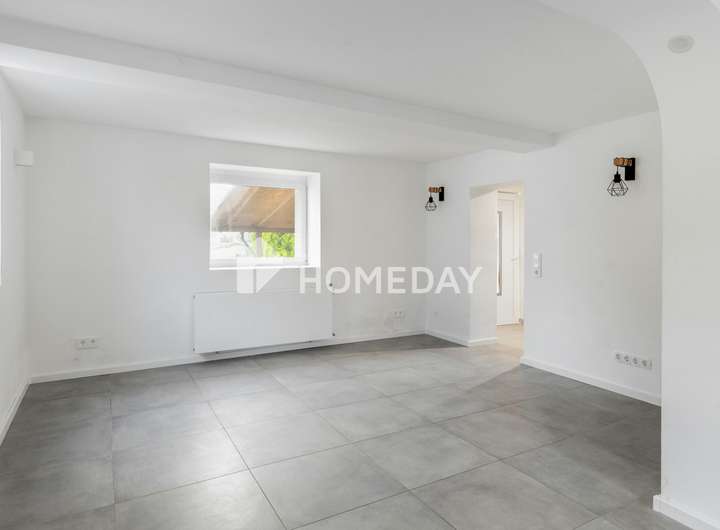 Beim Betreten des Hauses werden Sie von einem hellen, einladenden Flur empfangen, der den Charakter und die Wärme dieser Immobilie spürbar macht. Auf etwa 61 Quadratmetern Wohnfläche erstrecken sich drei gut geschnittene Zimmer über zwei Etagen – ideal für Paare, kleine Familien oder Individualisten, die das Besondere lieben.