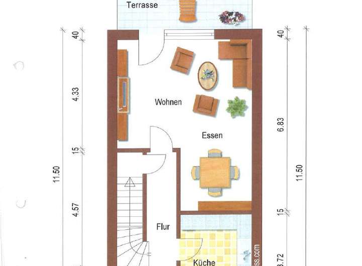 Das Reihenmittelhaus mit einer Wohnfläche von 90 m² teilt sich, wie folgt, auf: